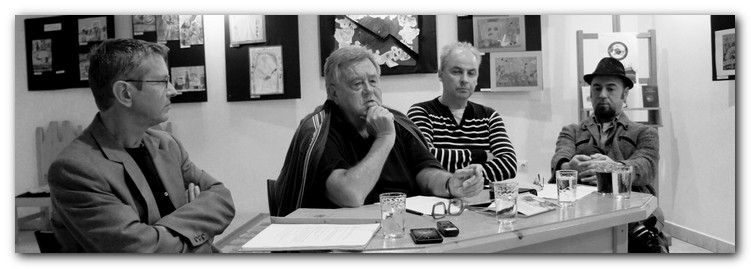 Sinkovits Péterrel Orfeum című regénye felett két ülésben Beszédes István, Hugyik Richárd, Nagy Abonyi Árpád és Szögi Csaba beszélget