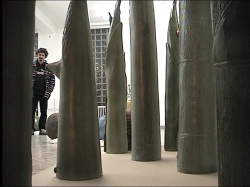 Bizony, Ózsvár Péter is csak ilyen örök életű alkotásokat készít. És hogy mindez, amit most itt magunk körül látunk, hogy mindez legyen, ahhoz föltétlenül meg kell halni. Először is természetesen meg kell halni az agyagnak, véget kell vetnie a változékonyságának, át kell lényegülnie cseréppé, közben meg kell halni pillanatról pillanatra az időnek, és Ózsvár Péternek is szép folyamatosan, ahogy simogatja a sarat, és a mozdulatnak is, ahogy végbemegy, a simogatásnak a maga folyamatosságában, a maga oszthatatlanságában, de mégis rezzenetről rezzenetre oda kell halnia a felületre, a lélegzetnek is meg kell történnie, és aztán meg kell törnie, van egy utolsó szusszanás, és aztán már soha többször, minden, ami akkor van, az már soha többé, ennek az egésznek végül, ennek az intenzív létezésnek ott az agyag körül végtére is el kell nyugodnia, meg kell békélnie, magába kell szállnia.
